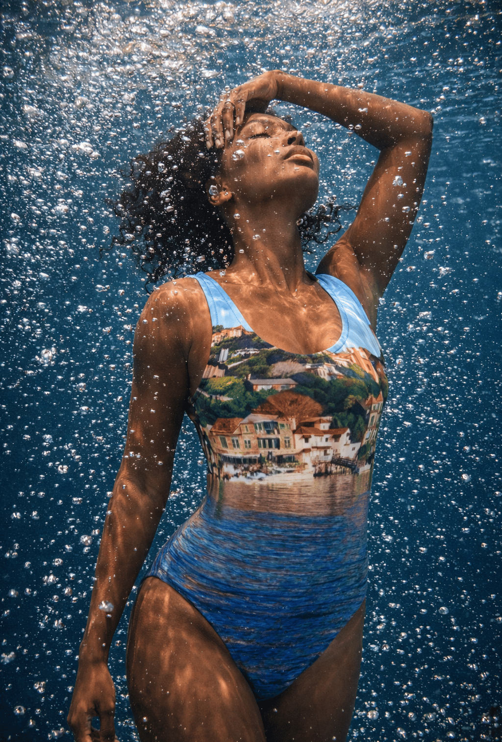 An exploration of how design behaves when it’s no longer static—when it moves with water, with light, with the body itself. The print becomes fluid, almost alive, changing with every step, every reflection, every moment in motion.